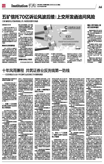 十年风雨兼程 共筑证券业反洗钱第一防线——《反洗钱法》出台十年证券行业反洗钱工作回顾和展望 2016-06-02 来源:证券时报网 作者:李筠