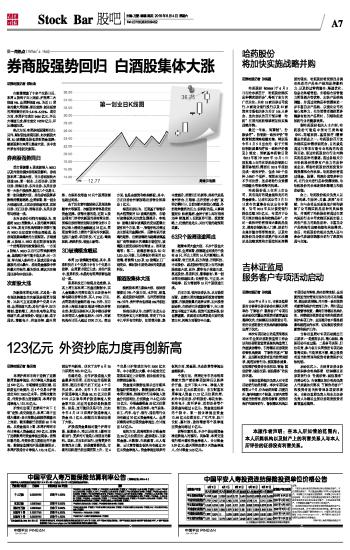 券商股强势回归 白酒股集体大涨 2016-06-04 来源:证券时报网 作者:郑灶金