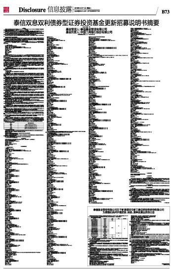 泰信双息双利债券型证券投资基金更新招募说明书摘要
