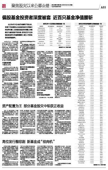 偏股基金投资者深度被套 近百只基金净值腰斩