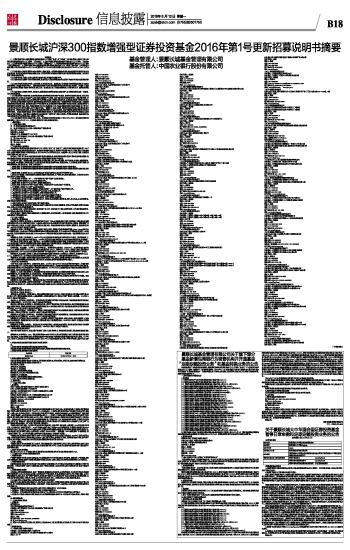 景顺长城沪深300指数增强型证券投资基金2016年第1号更新招募说明书摘要