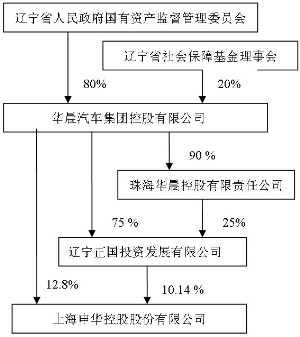 根据辽宁省人民政府决定,辽宁省人民政府国有资产监督管理委员会(简称“辽宁省国资委”)将其持有的华晨集团股权的20%无偿划转至辽宁省社会保障基金理事会(简称“辽宁省社保基金”)。划转完成后,辽宁省国资委将持有华晨集团80%股权,辽宁省社保基金将持有华晨集团20%股权。同时,根据辽宁省国资委和辽宁省社保基金的约定,由辽宁省国资委代辽宁省社保基金行使出资人权利,华晨集团原有管理关系不调整。华晨集团仍为国有公司,企业类型由“有限责任公司(国有独资)”变更为“有限责任公司”。