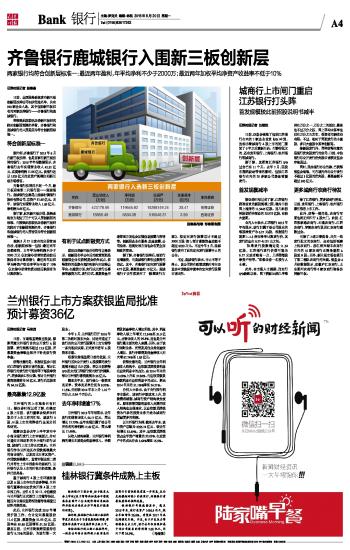 齐鲁银行鹿城银行入围新三板创新层