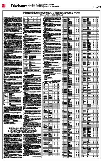 无锡新宏泰电器科技股份有限公司首次公开发行股票发行公告