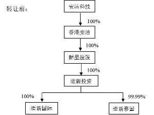 证券代码:002635 证券简称:安洁科技 公告编号:2016-034 苏州安洁科技股份有限公司关于 公司下属子公司之间股权转让的公告 本公司及董事会全体成员保证信息披露内容的真实、准确和完整,没有虚假记载、误导性陈述或重大遗漏。 一、交易概述 1、本次公司下属子公司之间内部股权转让的基本情况 为更好的整合苏州安洁科技股份有限公司(以下简称"公司"或"安洁科技")下属子公司的资源,发挥协同效应,提高管理和运营效率,公司全资孙公司适新投资有限公司(以下简称"适新投资")拟将持有的适新国际有限公司(以下简称"适新国际")100%股权和适新科技(泰国)有限公司(以下简称"适新泰国")99.99%股权转让给公司全资子公司安洁科技(香港)有限公司(以下简称"香港安洁")。适新投资是香港安洁全资孙公司,本次股权转让采取平价转让方式,适新国际100%股权转让价款为1.00美元,泰国适新99.99%股权转让价款为17,768,168.00美元。本次股权转让不会对公司的生产经营和发展产生不利影响,符合公司长远规划,符合全体股东和公司的利益。 2、董事会审议议案的表决情况 公司已于2016年6月20日召开第三届董事会第一次会议审议通过《关于公司下属子公司之间股权转让的议案》,无需提交公司股东大会审议。 3、本次对外投资不构成关联交易,亦不构成重大资产重组。 二、交易双方的情况介绍 (一)转让方 公司名称:适新投资有限公司 成立日期:1999年11月26日 注册地址:新加坡义顺工业园A,513号 注册编号:199907455G 注册资本:5,949,000新加坡元 公司类型:私人有限公司 主要业务:持有其他公司股权 (二)受让方 公司名称:安洁科技(香港)有限公司 注册资本:9,000万美元 注册地址:香港九龙旺角花园街2-16号好景商业中心1007室 注册证明书编号:2143750 商业登记证号码:63815123-000-09-14-9 企业境外投资证书号:境外投资证第 N3200201400003 号 (三)交易双方的关系 香港安洁持有新星控股(新加坡)有限公司(以下简称"新星控股")100%股权,新星控股持有适新投资100%股权,所以适新投资是香港安洁的全资子公司。 三、交易标的基本情况 1、适新国际的基本情况 公司名称:适新国际有限公司 成立日期:2007年10月5日 注册地址:新加坡义顺工业园A,513号 注册编号:200718483E 注册资本:2新加坡元 公司类型:私人有限公司 主要业务:精密金属零件制造 截至2016年5月31日,适新国际的总资产26,591,000.00美元,净资产-83,423,000.00 美元,2016年1-5月实现营业收入1,336,000.00美元,实现净利润-1,132,000.00美元。(未经审计) 2、泰国适新的基本情况 公司名称:适新科技(泰国)有限公司 成立日期:泰国历2548年7月28日(公历2005年7月28日) 法人编号:0105548097899 注册资本:608百万泰铢(121.6百万股) 主要业务:精密金属零件制造 截至2016年5月31日,适新泰国的总资产1,758,064,109.00泰铢,净资产1,153,508,215.00泰铢,2016年1-5月实现营业收入537,581,302.00泰铢,实现净利润105,543,564.00泰铢。(未经审计) 四、股权转让的主要内容 转让方:适新投资有限公司 受让方:安洁科技(香港)有限公司 1、转让方将其拥有的适新国际100%股权和泰国适新99.99%股权全部转让给受让方。 2、本次股权转让采用平价转让方式,适新国际100%股权转让价款为1.00美元,泰国适新99.99%股权转让价款为17,768,168.00美元。 3、股权转让后,转让方不再享有已出让股权的股东权利、承担相应的股东义务;受让方依照本协议享受股东权利的同时必须承担股东的义务。 五、股权变更前后架构 本次股权转让前后,公司业务板块架构如下: ■