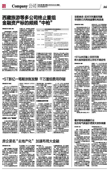 | 西藏旅游等多公司终止重组 金融资产标的频频“中枪” | 2016-06-24 | |