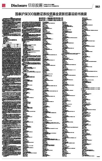 国泰沪深300指数证券投资基金更新招募说明书摘要