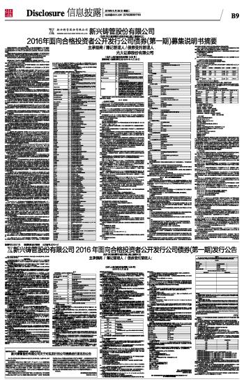 新兴铸管股份有限公司2016年面向合格投资者公开发行公司债券(第一期)发行公告