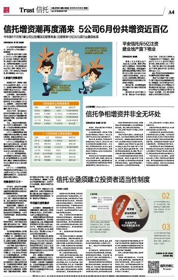 信托增资潮再度涌来 5公司6月份共增资近百亿