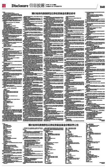 博时裕昂纯债债券型证券投资基金招募说明书 2016-07-01 来源:证券时报网 作者: