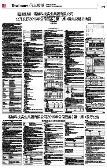 | 洛娃科技实业集团有限公司2016年公司债券(第一期)发行公告 | 2016-07-01 | |