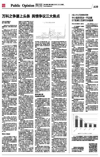 万科之争屡上头条 舆情争议三大焦点 2016-07-01 来源:证券时报网 作者:黄帆 马建勋 邹惠康