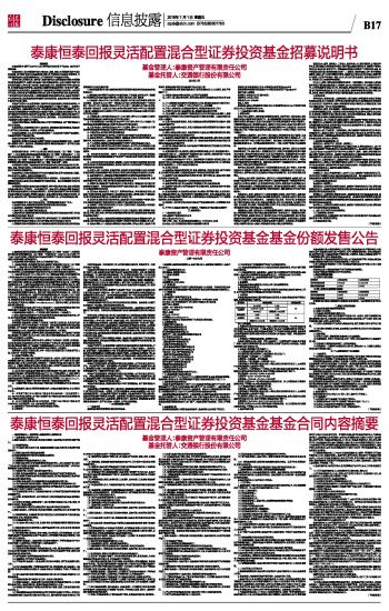 泰康恒泰回报灵活配置混合型证券投资基金基金份额发售公告