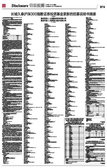 长城久泰沪深300指数证券投资基金更新的招募说明书摘要