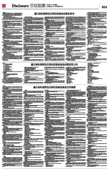 鑫元裕利债券型证券投资基金基金合同摘要