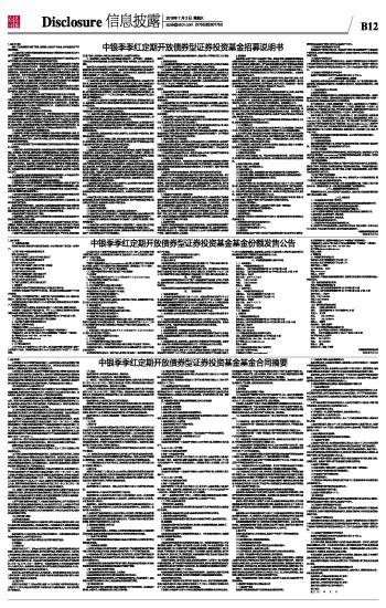中银季季红定期开放债券型证券投资基金基金合同摘要 2016-07-02 来源:证券时报网 作者: