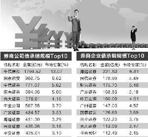 上半年债券承销排名出炉。去年对券商来说,赚钱效应超过IPO的债券业务已进入充分竞争阶段,抢项目常常发生,业务结构和竞争格局相比去年也发生明显变化。 一是公司债承销金额已超过去年全年水平,同比增长接近14倍;二是企业债承销排名中,曾独占鳌头的国开证券竟跌出前10位,公司债、企业债承销规模排行榜分别被中信建投和海通占据首席。 总承销前20券商占6席 据WIND统计,今年上半年整个债券市场融资超过7.6万亿,较去年同期增长85%,占去年全年发行量的33%。 其中,地方政府债、同业存单和公司债同比增长最为明显,分别占据19.3%、33.3%和7.54%的市场份额,合计高达60%。 从总承销金额排名来看,建行、工行、农行、中行、交行五大银行毫无悬念地占据前5位。银行依然在债券承销方面占据优势,在前20名榜单中,只有6席是券商。 中信建投背靠银行 总体来看,虽然债券违约警钟长鸣,大量的债券发行被取消,今年二季度融资额出现明显缩水,但上半年仍是公司债等债券品种的发展高峰。 据统计,上半年公司债承销金额超过了去年全年的水平,相当于去年上半年的15倍。 其中,融资额超过千亿的券商仍只有中信建投一家,承销规模1794.52亿元,占据了13.07%的市场份额。此外,中金公司、兴业证券上半年发力,均挤进了前10位。 在许多券商的业务结构中,债券的收入贡献已远远超过IPO,这就是为什么中信建投会有500万年终奖的传言。 一家大型券商债券融资部总经理表示,IPO团队动辄几百人,而债券承销团队可能在几十人的范畴,项目周期在三个月左右,比IPO轻易耗费几年要短得多,人均创利显而易见。 另一家券商债券负责人透露,中信建投的诸多项目得益于中信银行,中信银行常常与中信建投的债券项目组成员一同去与客户面谈,为其介绍了不少项目。 企业债国开跌出前10 不同于公司债的爆发式增长,企业债同比增长较为缓慢,但排名发生了明显变化。这与不同券商的对债券品种判断和承销能力有关。 最让人意外的是,2015年位居企业债承销冠军的国开证券,今年上半年排名竟然消失在前10名的榜单中,承销额77.62亿元。 企业债规模最大的是海通证券,承销金融222亿元领跑;其次是国信证券,承销额179亿元。 值得注意的是,中小券商有不少排名进入前10位,包括广州证券排名第6位,天风证券排名第9位,恒泰长财证券排名第10位。 本版导读: