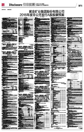 紫金矿业集团股份有限公司2016年度非公开发行A股股票预案