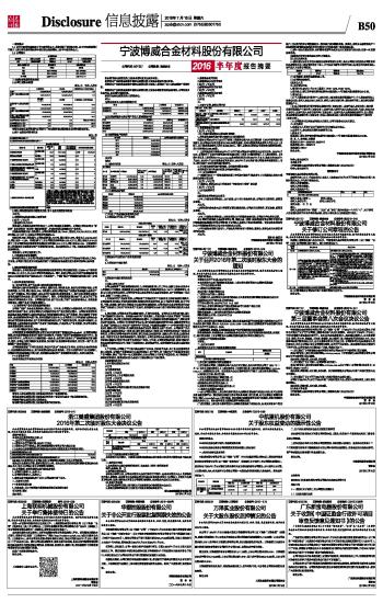 宁波博威合金材料股份有限公司2016半年度报告摘要 2016-07-16 来源:证券时报网 作者: