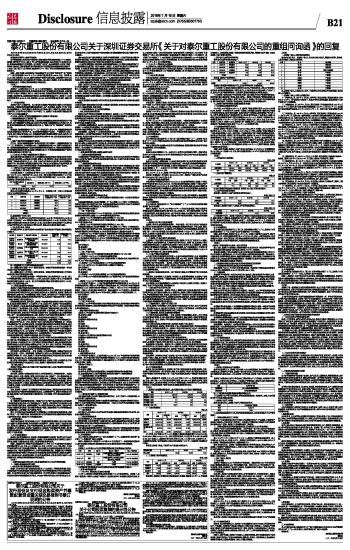 证券代码:002347 证券简称:泰尔重工 公告编号:2016-44 泰尔重工股份有限公司关于深圳证券交易所《关于对泰尔重工股份有限公司的重组问询函》的回复 2016-07-16 来源:证券时报网 作者:
