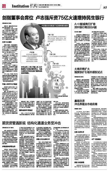 剑指董事会席位 卢志强斥资75亿火速增持民生银行 2016-07-19 来源:证券时报网 作者:李东亮
