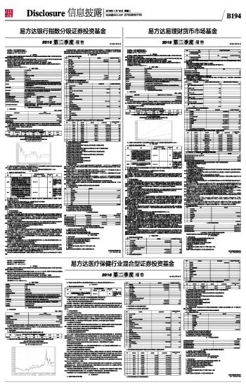 易方达银行指数分级证券投资基金2016第二季度报告摘要 2016-07-19 来源:证券时报网 作者: