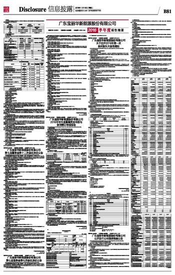 广东宝丽华新能源股份有限公司2016半年度报告摘要