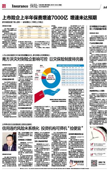 入汛以来全国超过300条河流超警戒水位,多位保险公司高管表示: 南方洪灾对财险企影响可控 巨灾保险制度待完善 2016-07-20 来源:证券时报网 作者:陈冬生