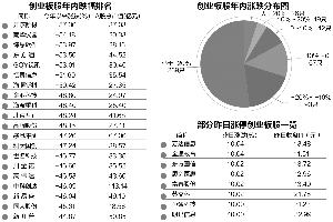创业板个股的市场表现分化严重。今年以来,剔除近一年上市次新股后,87只个股上涨,429只个股下跌。总体来看,多数个股跌势惨重,跌幅在20%以上的个股多达269只,涨幅大于20%的个股仅26只。