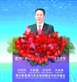 | 许家印在恒大新能源汽车全球战略合作伙伴峰会上演讲 杨苏/供图 |