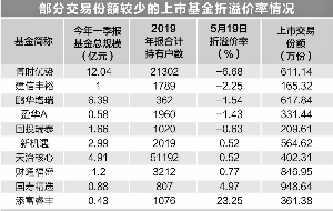 数据显示,截至5月19日收盘,这15只上市交易份额低于1000万份的基金,平均溢价率为1.2%,比份额在1000万份以上的97只基金0.1%的溢价率高出1.1个百分点。其中,溢价率最高的添富睿丰,上市份额为361.38万份,溢价率23.25%。而上市交易份额611.14万份的博时优势,目前则出现6.68%的折价率。