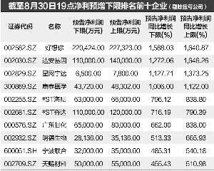 在半年报披露已经接近尾声时,众多公司也同时发布了今年前三季度业绩预测。Wind数据统计发现,截至8月30日19点,A股有461家公司披露了三季报业绩预测,其中,有104家公司业绩预喜,超过约50家公司有望实现净利润增速100%以上。