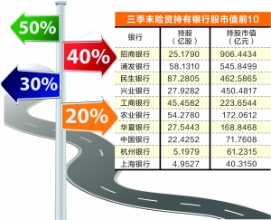 截至今年三季末,保险资金共现身56个行业、358家上市公司前十大流通股东名单上
