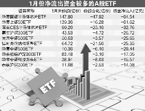 1月股票ETF净流出逾百亿 宽基产品“失血”严重