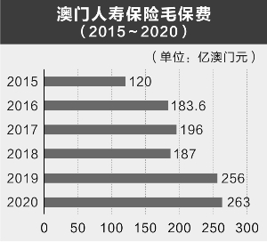 澳门金管局最新数据显示,2020年澳门人寿保险毛保费达263亿澳门元,较2019年同期逆势增长2.7%。纵观近年澳门保险业的发展,毛保费从2015年的120亿澳门元增长到2020年的263亿澳门元,实现翻倍。