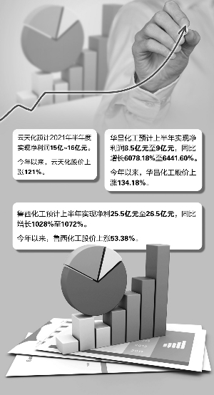 受益于经济复苏,下游需求回暖,化工行业景气度高企,多家上市公司上半年业绩大增。