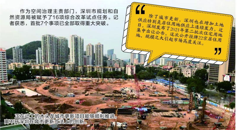 去年,中共中央办公厅、国务院办公厅印发了《深圳建设中国特色社会主义先行示范区综合改革试点实施方案(2020-2025年)》。用足用好综合改革试点关键一招,努力走出一条符合超大型城市特点和规律的治理新路子,作为空间治理主责部门,深圳市规划和自然资源局被赋予了16项综合改革试点任务。记者获悉,首批7个事项已全部取得重大突破。