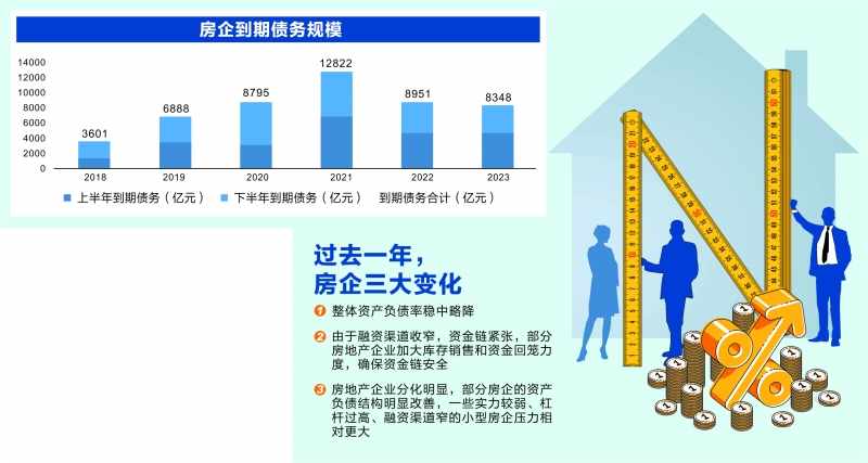 “从行业看,房企这一年来的主要变化体现在三个方面。”光大银行分析师周茂华对证券时报记者分析,一是整体资产负债率稳中略降;二是由于融资渠道收窄,资金链紧张,部分房地产企业加大库存销售和资金回笼力度,确保资金链安全;三是房地产企业分化明显,部分房企的资产负债结构明显改善,一些实力较弱、杠杆过高、融资渠道窄的小型房企压力相对更大。