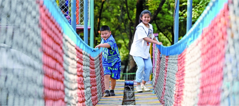 | 9月19日,儿童在家长的陪同下在江苏省淮安市楚秀园游乐场中快乐地游玩,享受中秋佳节的欢乐时光。中新社发 贺敬华/摄 |