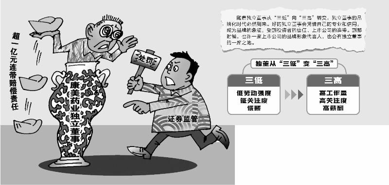 随着独立董事从“三低”向“三高”转变,独立董事的品牌化时代必然到来。好的独立董事会凭借自己的专业和信用,成为品牌的象征,受到投资者的信任、上市公司的追捧。到那时候,也许一家上市公司的品牌形象代言人,也会有独立董事的一席之地。