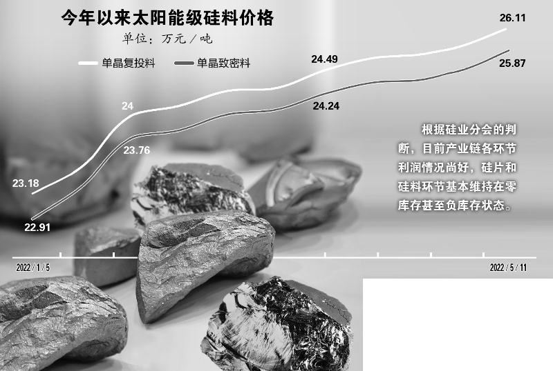 然而,同期硅料企业包括协鑫、通威、新特、亚硅等扩产企业均不同程度受到疫情运输不畅的影响,扩产增量不及预期,导致近期硅料企业无论是在执行原有订单方面,还是满足新增产能需求方面,均略感力所不能及,因此硅料市场供应紧缺状态持续,价格依旧维持涨势。
