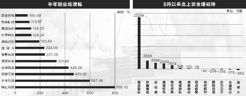 根据已公布的半年报、快报、预告数据,共有12股上半年净利润翻倍增长,分别是精功科技、大全能源、双良节能、合盛硅业、盾安环境等。精功科技净利润增幅最高,公司上半年实现盈利0.67亿元,同比增长800.42%。