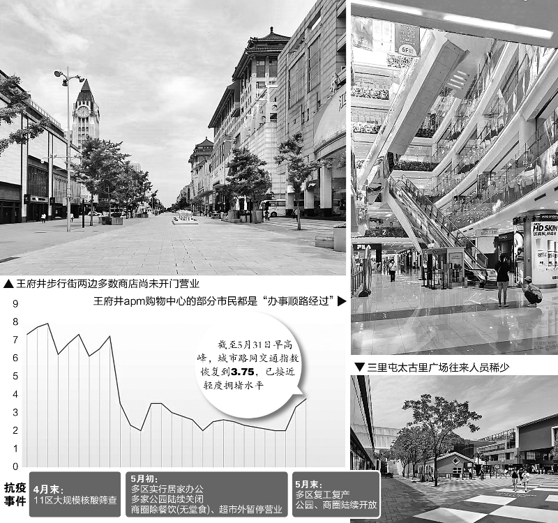 随着疫情防控取得积极进展,北京市部分地区已开始提出“在严防严控中守护好逐渐恢复的烟火气”。而根据证券时报记者对北京市路网流量、企业到岗、商圈人气的实地调研来看,北京在推动复工复产的节奏逐步加快,尤其是交通路网、企业到岗都取得了显著改善,而端午假期则备受许多商家的期待。