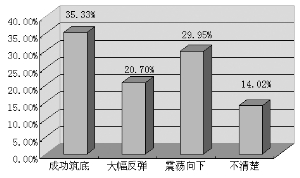 从此轮股指的调整来看,自去年10月中旬以来上证指数调整时间接近八个半月。在这段时间内,虽然股指数次出现较有力度的反弹,管理层也出台降低印花税的利好,但股指最大跌幅已经超过55%,远远超过香港及美国等成熟证券市场的调整幅度。A股市场在经历了深调之后,目前的市盈率水平已经回落到比较合理的区域。这是否意味着调整已经结束了呢?然而根据“你认为始自6124点的调整结束了吗?”的调查结果,其中选择“已经结束”、“尚未结束”和“说不清楚”的票数分别为773票、1531票和464票,所占比例分别为27.93%、55.31%和16.76%。从该项投票结果可以清晰地看出,普通投资者对于目前股指走出调整的信心并不足,仅有不到两成的投资者认为调整已经结束。相比之下认为尚未结束的比例则超过五成,两者得票比例为1:2,表明目前市场做空的气氛依然比较浓厚,投资者对于股指的表现比较失望。