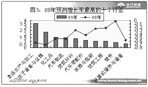 2009年预测盈利增长前三位依旧是食品生产与加工、电子设备与仪器和化工品,分别为358%、228%和151%。