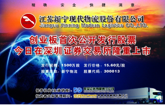 江苏新宁现代物流股份有限公司 创业板首次公开发行股票今日在深圳证券交易所隆重上市