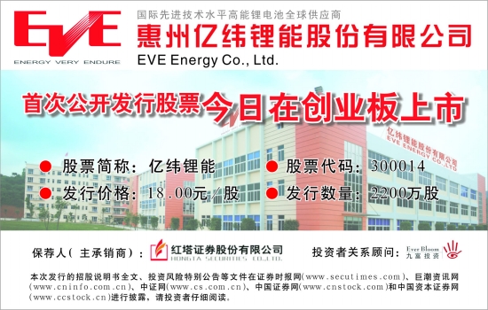 惠州亿纬锂能股份有限公司 首次公开发行股票今日在创业板上市