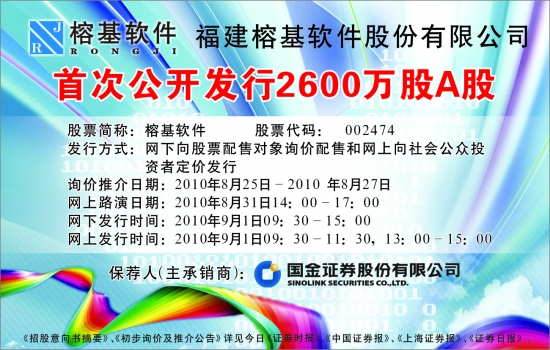 福建榕基软件股份有限公司 首次公开发行2600万股A股