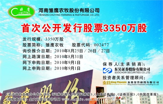 河南雏鹰农牧股份有限公司 首次公开发行股票3350万股