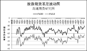 昨日各期指合约呈现近强远弱的格局,出现一定跨期套利机会。IF1010与IF1009的价差在10到15点之间波动,该价差10点时开出卖IF1009买IF1010套利单的投资者当日即可获得这5个点的收益。最远月合约IF1103与IF1009的价差日内在70点以上盘整,是否具有跨期套利机会尚有待观察。